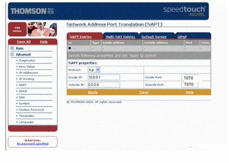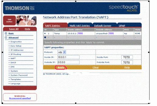 Type in 7070 into the fields in connection with Inside Port and Outside Port respectively.When configuration is done, click Apply to save.