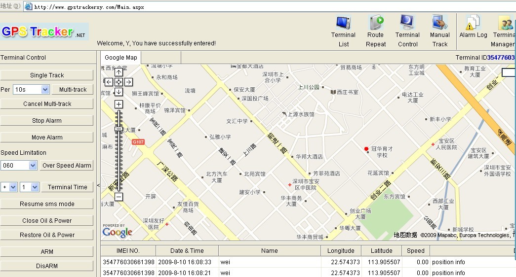 Sign in the server map with your user ID and password, login the map as below, Add Imei number in menu of terminal management