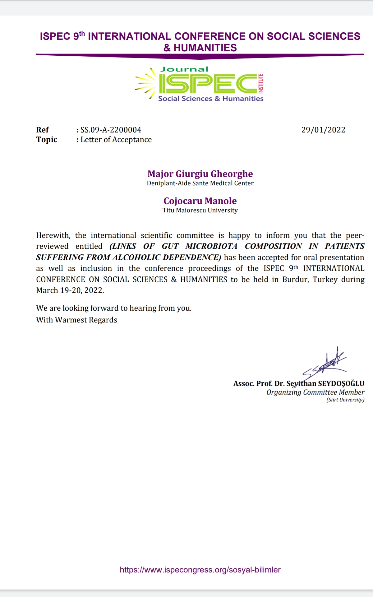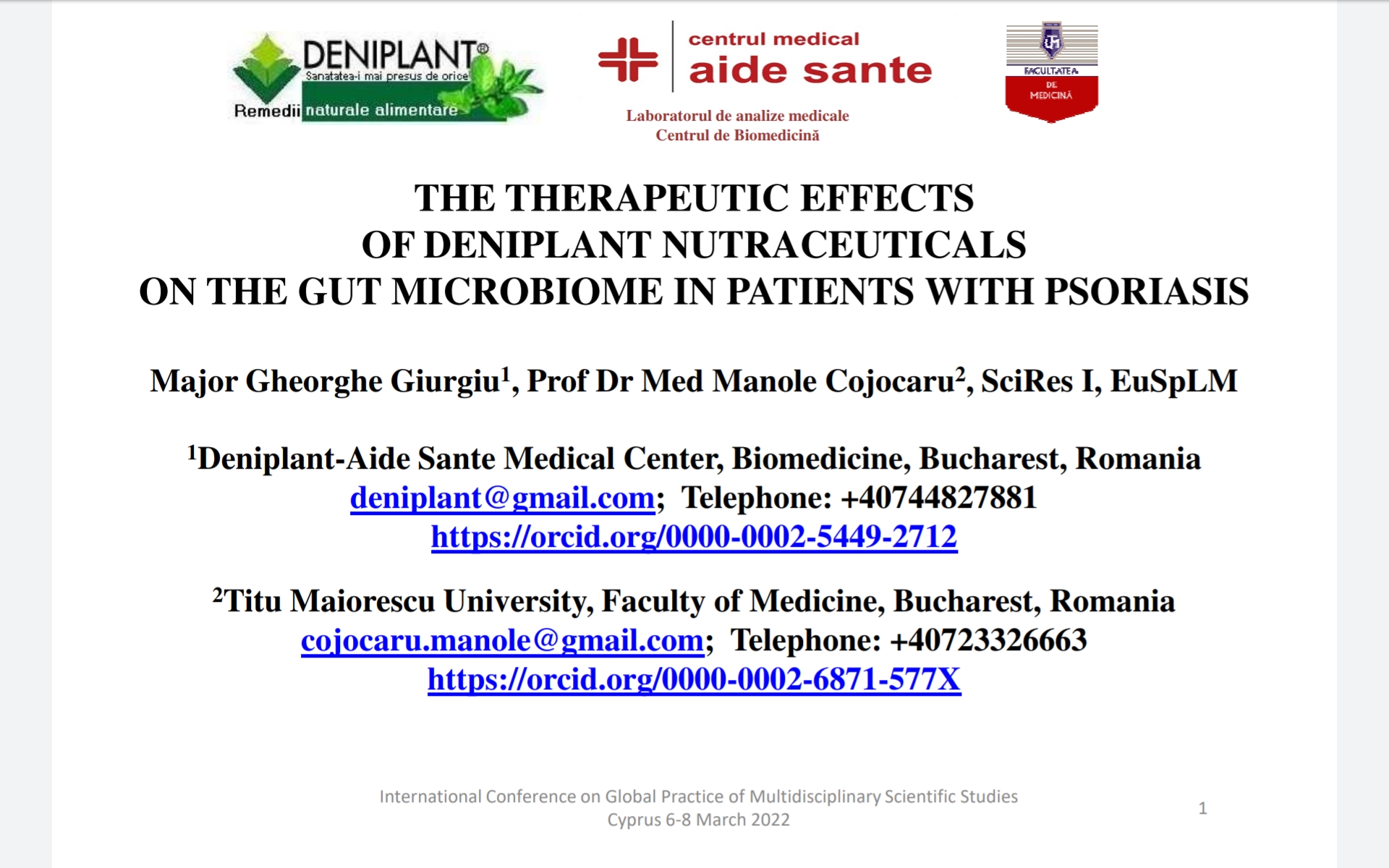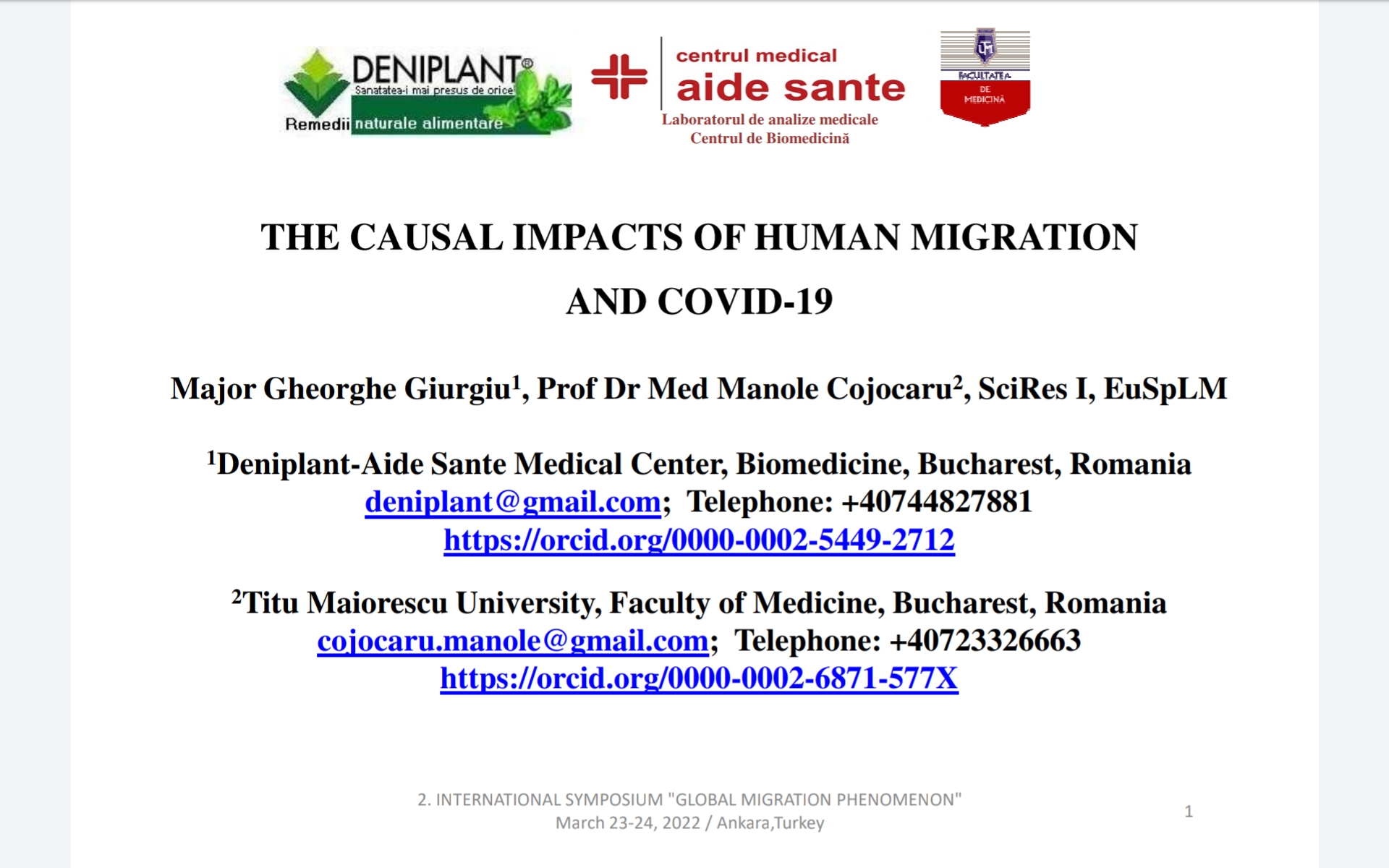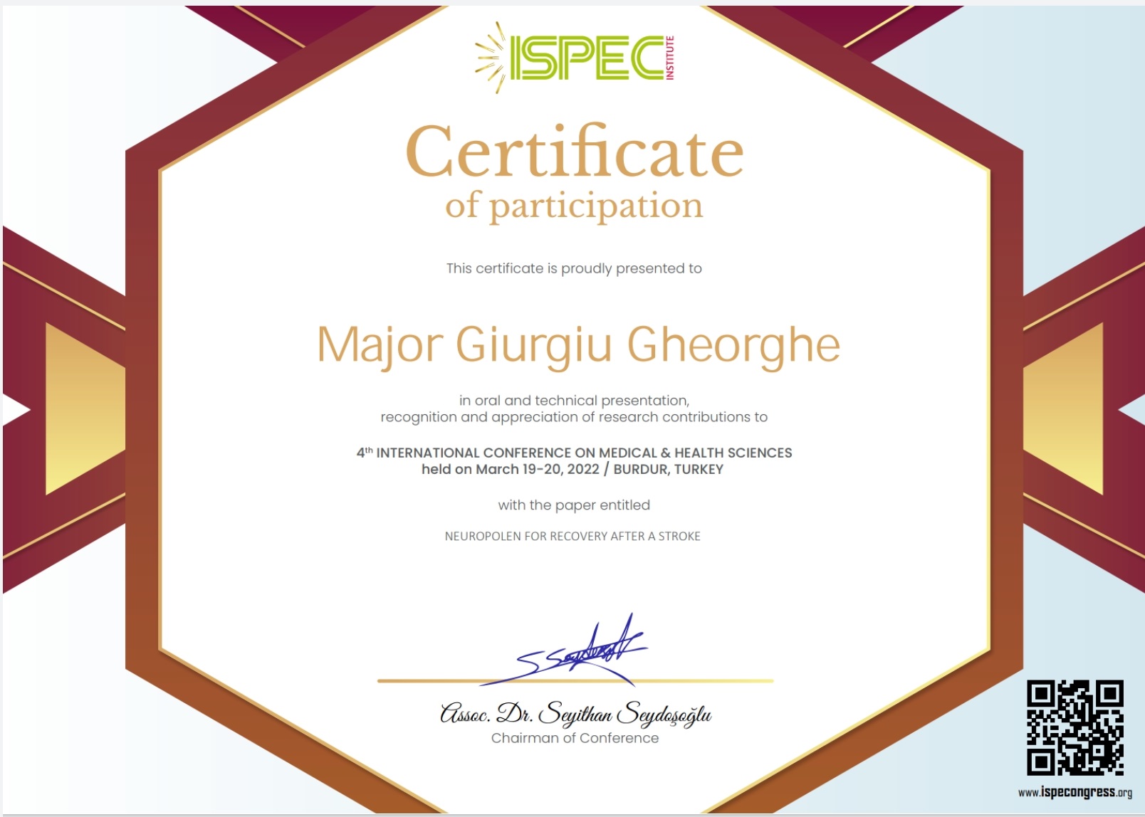 on Medical & Health Sciences held on March 19-20.2022 Burdur Turkey