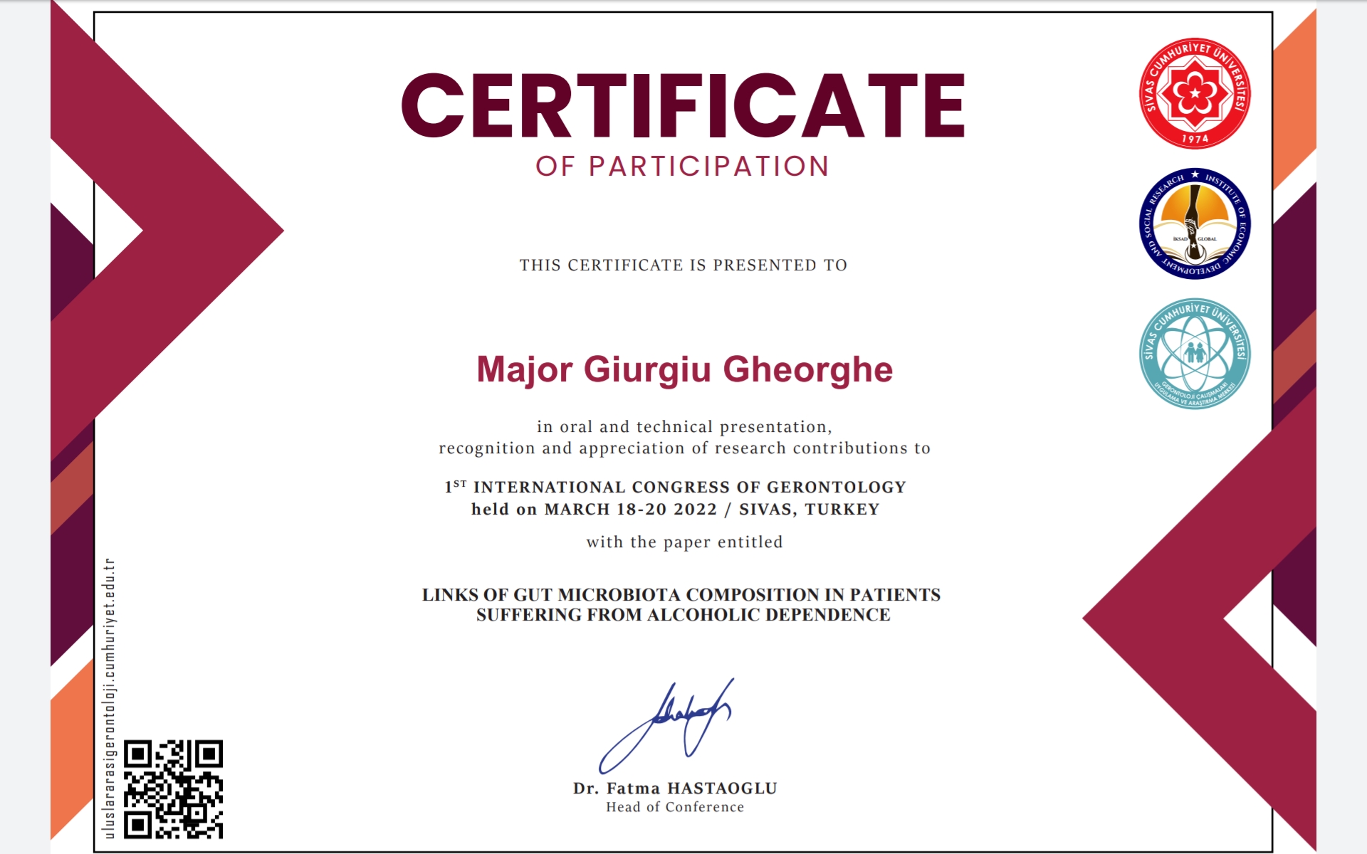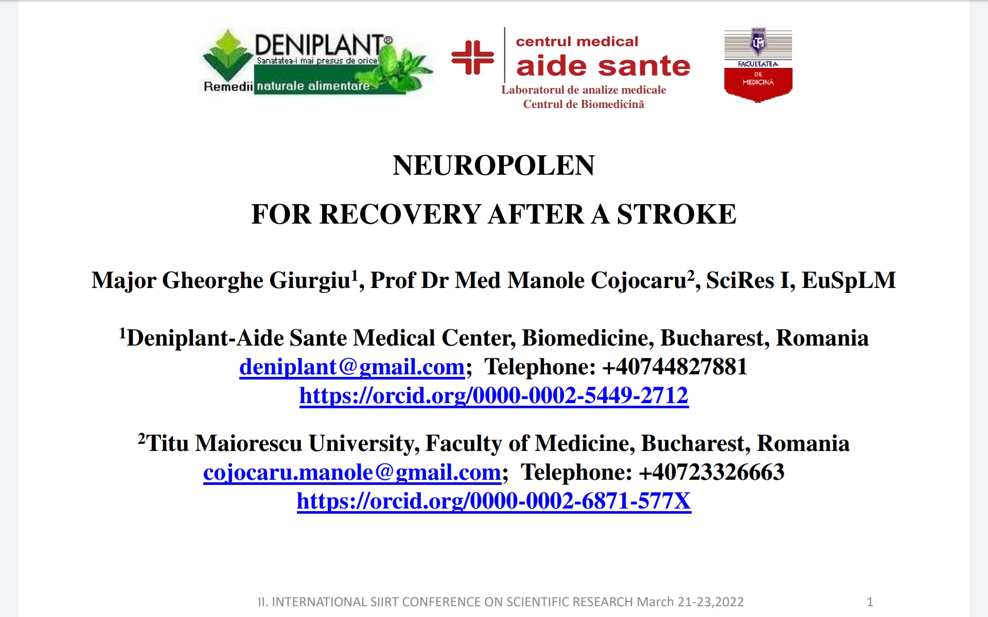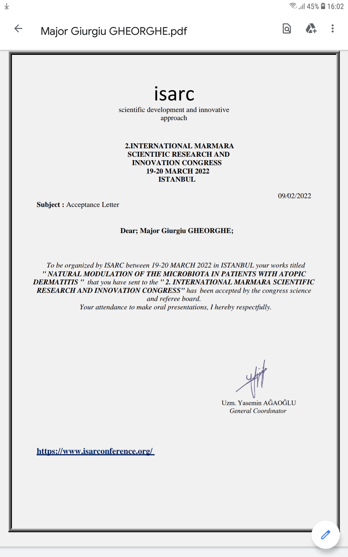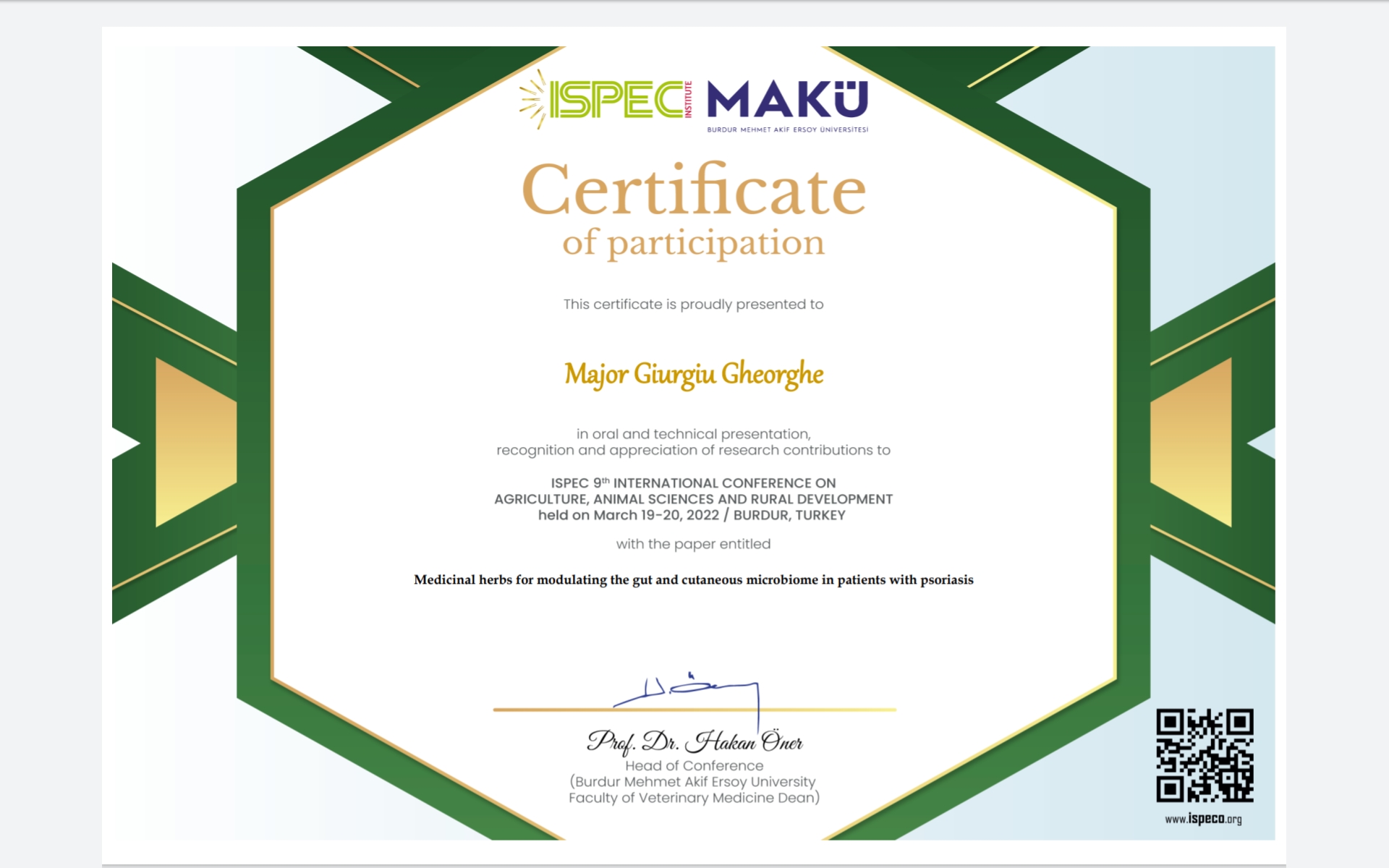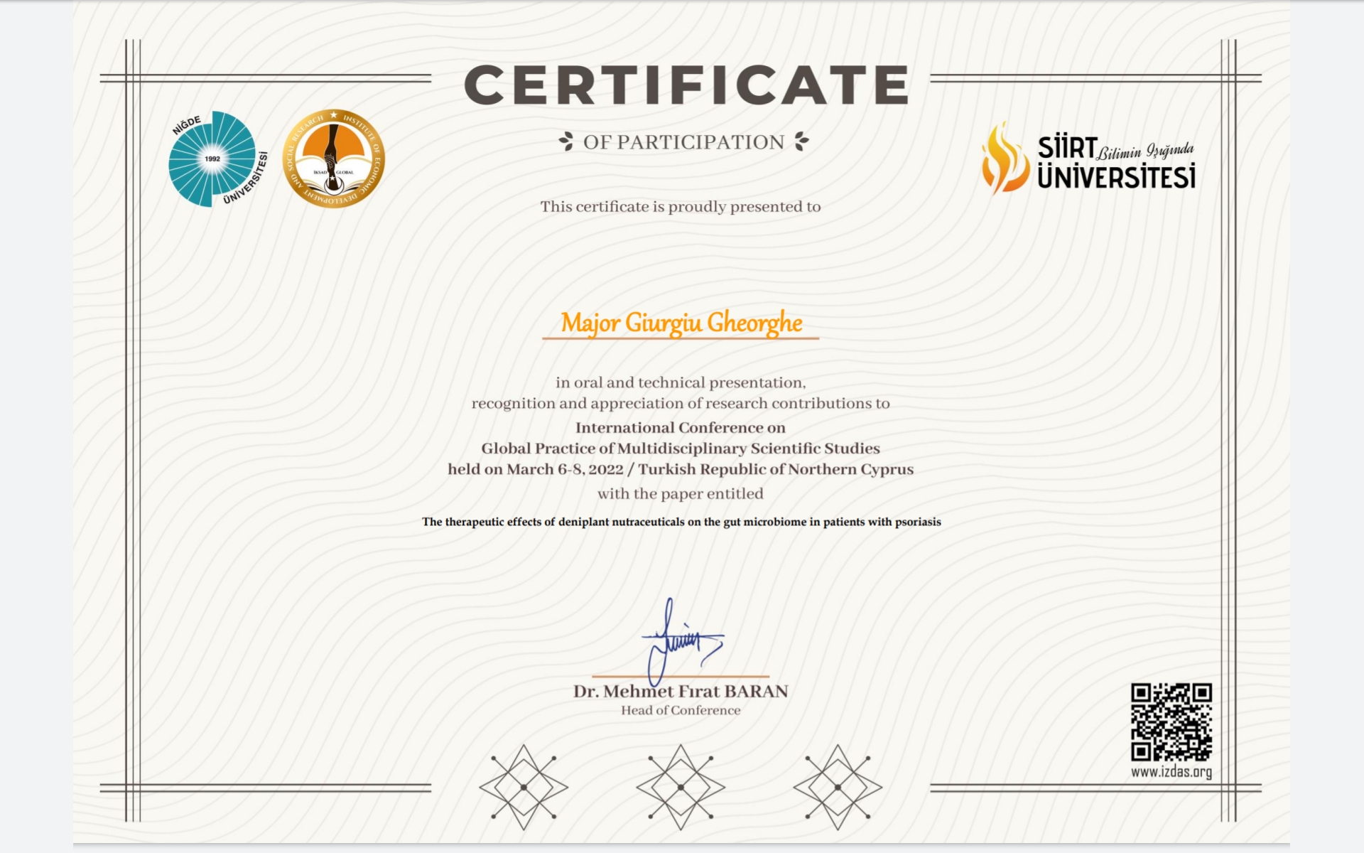 on Medical & Health Sciences held on March 19-20.2022 Burdur Turkey