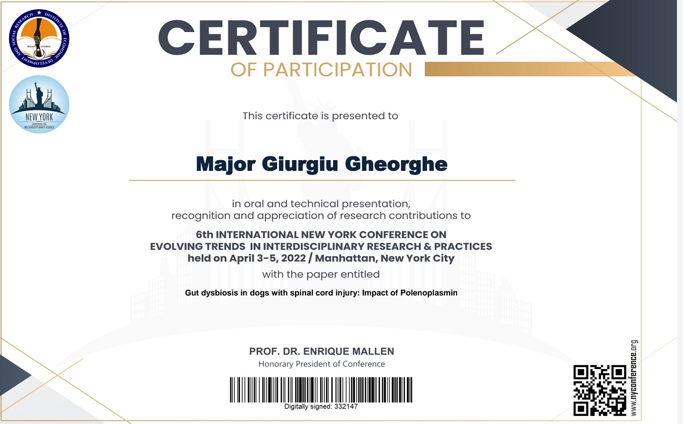 Gut dysbiosis in dogs with spinal cord injury: Impact of Polenoplasmin